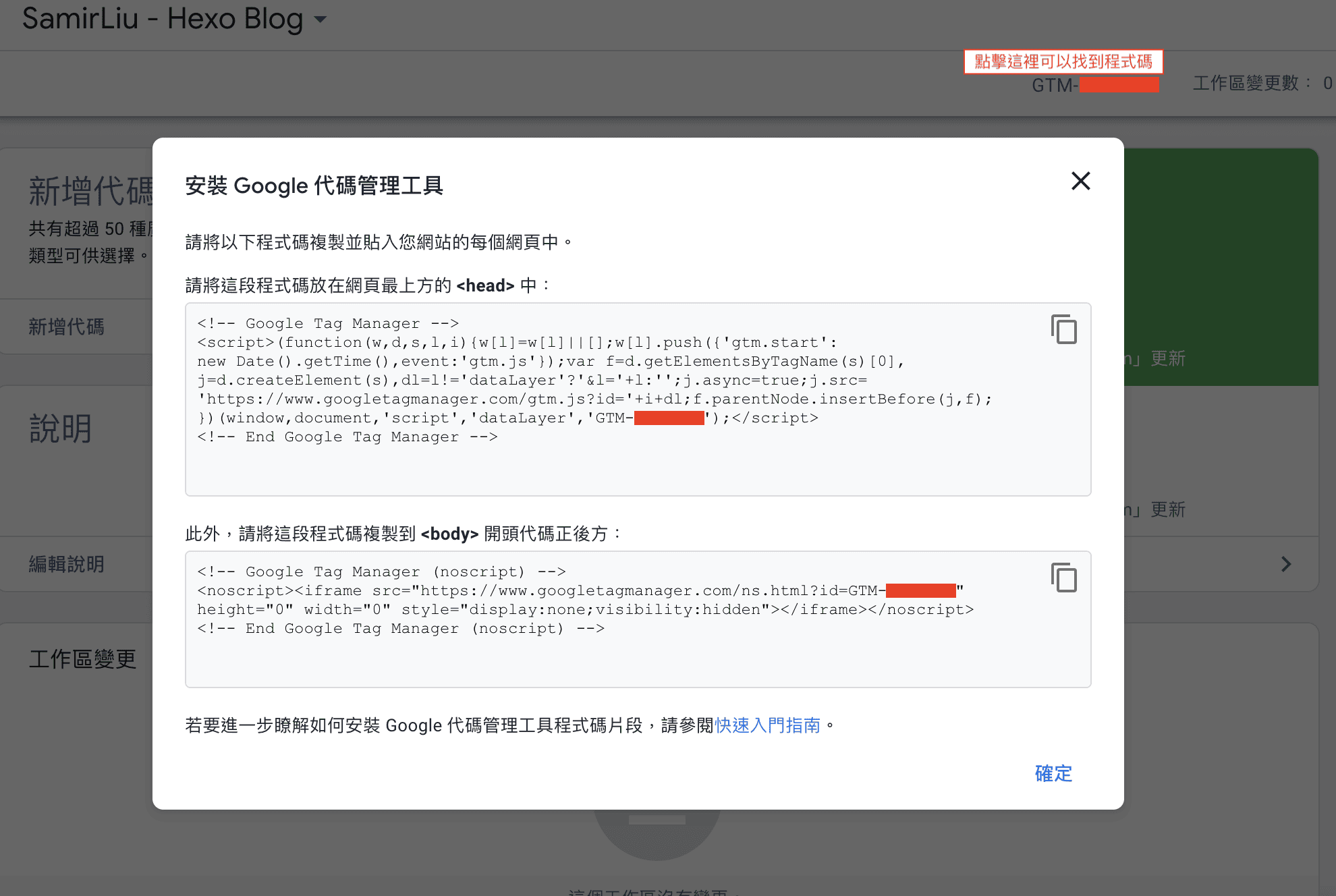 部署只需要在 GTM 裡找到兩段程式碼,分別放在 head 與 body 裡就完成了,參考官方 Quick Start Guide。