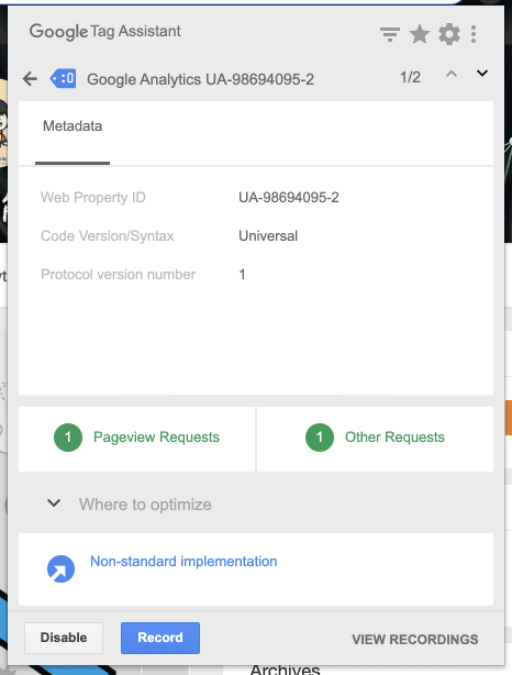 推薦使用 Tag Assistant,可以檢查 Google 服務的工具,啟用後重新整理網頁將會看到代碼的狀態。