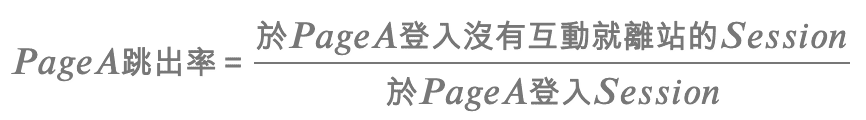 當訪客進到登陸頁(Landing Page)後,沒有進行下一步的互動便直接離站,此登陸頁會紀錄 1 筆跳出(Bounce),計算基於 Session。