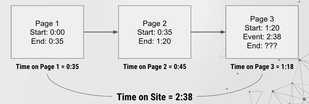 訪客在特定頁面上花費的時間(以秒為單位),計算方法是從下一個頁面的初始查看時間減去前一頁面的初始查看時間。此指標不適用於該屬性的退出頁面。