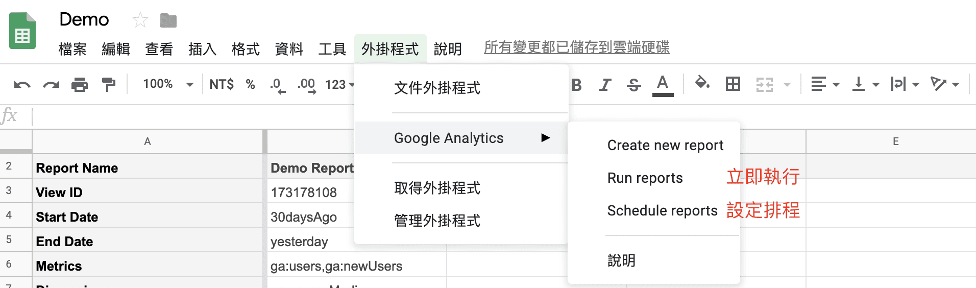 Google 試算表(Sheet) 有個好用的小工具,可以設定排程取得 Google Analytics 的數據,對習慣使用試算表的人是一大福音。